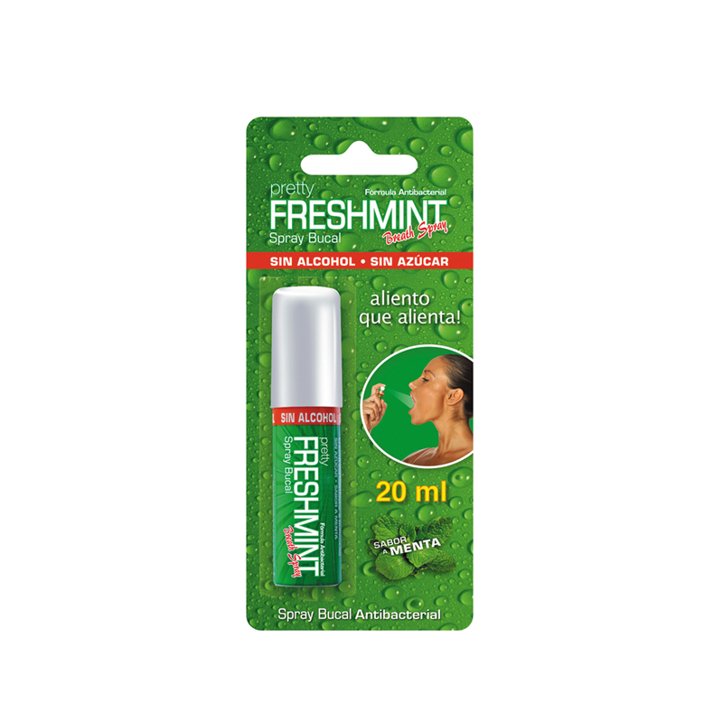 Siente la frescura de la menta con FRESHMINT Spray Bucal Antibacterial.
